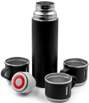 Thermos 500 ml, siinä on ruostumattomasta teräksestä valmistetut kaksoiseinät tyhjiöeristyksellä, jotka hidastavat lämpötilan vapautumista ympäristöön, korkki toimii 130 ml:n kupina, joka mahdollistaa mukavan juomisen, pitää kuuman ja kylmän juoman lämpötilan hyvin, lämmöneristysluokka: A +tiivis